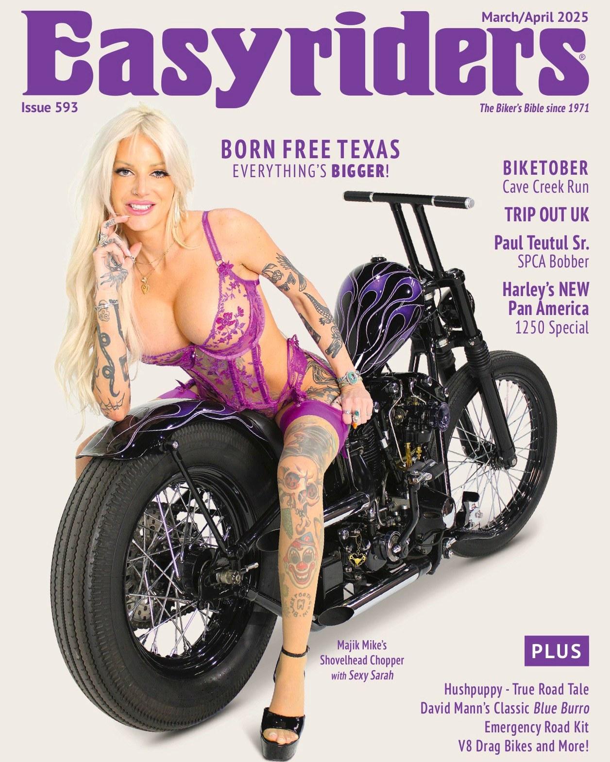 Easyriders magazine has been the 'Biker's Bible' for over 50 years, bringing scooter tramps the heart of the lifestyle we love. From killer coverage of righteous runs, rallies, and biker parties to true two-wheeled tales, badass biker fiction, hot Harley honeys, and the coolest custom choppers, Easyriders has it all.