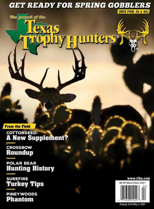 The Journal of the Texas Trophy Hunters is included with this membership to the Texas Trophy Hunters Association. The bi-monthly subscription to The Journal of the Texas Trophy Hunters offers the latest news and information on Texas whitetail and North American game that professional writers uniquely combine with first-hand hunting experiences from its members! Texas Trophy Hunters Association is a known leader in the Texas hunting and outdoor world. As a member of TTHA, you will become part of our mission to promote, protect, and preserve Texas' wildlife resources and hunting heritage for our future generations. In addition to joining in our mission, TTHA will provide you resources and products that will help in your hunting and outdoor experience.