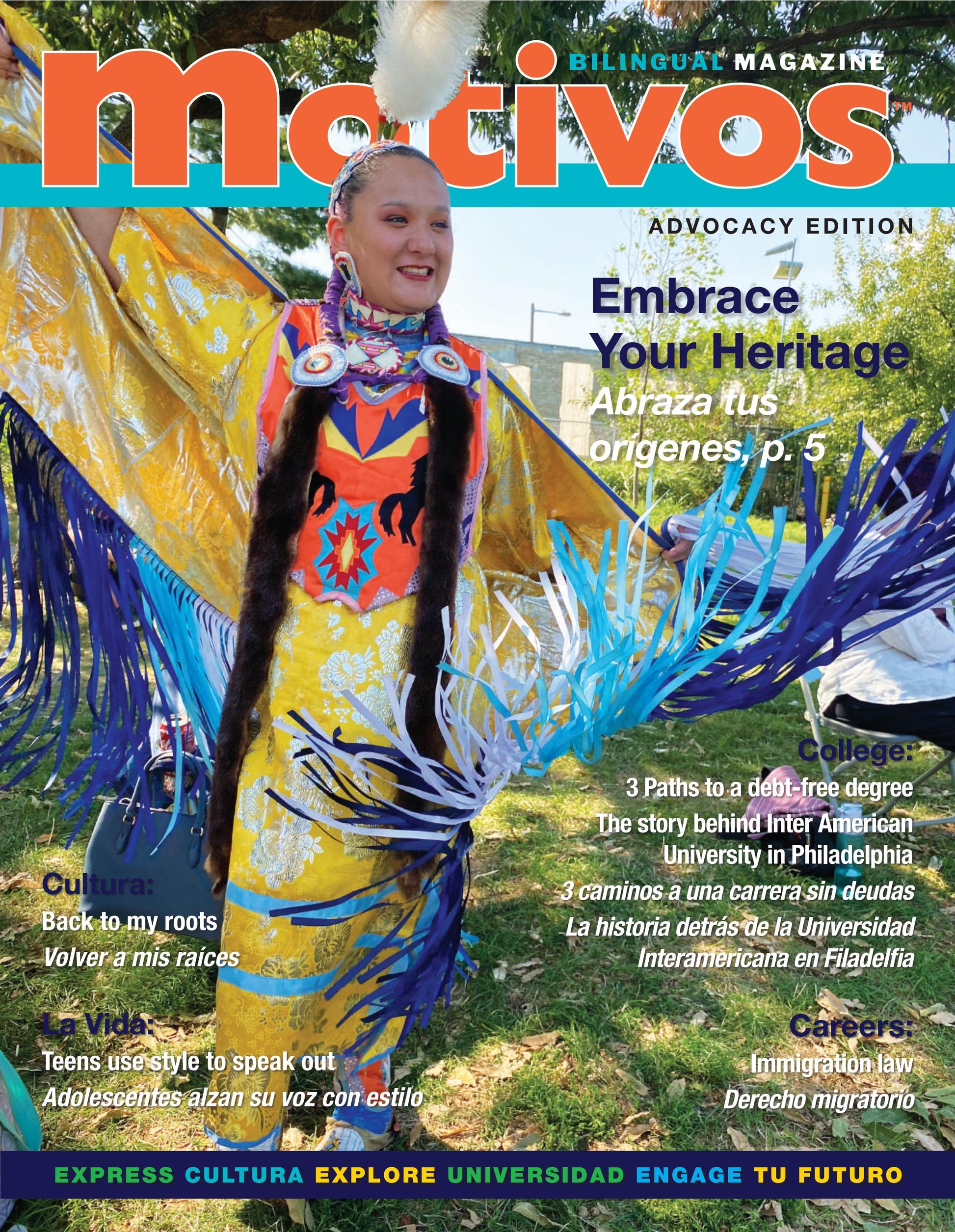 Motivos is a full color glossy magazine printed in English and Spanish that inspires and empowers Latino youth to explore their full potential and make informed choices about life, college, and career options.